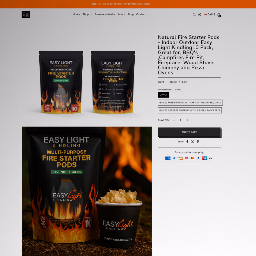 Our goal was to build a visually cohesive and high-performing Shopify store that reflected Smart Lite Fire’s brand identity and provided customers with a smooth buying experience for fire starters and bio-bricks.