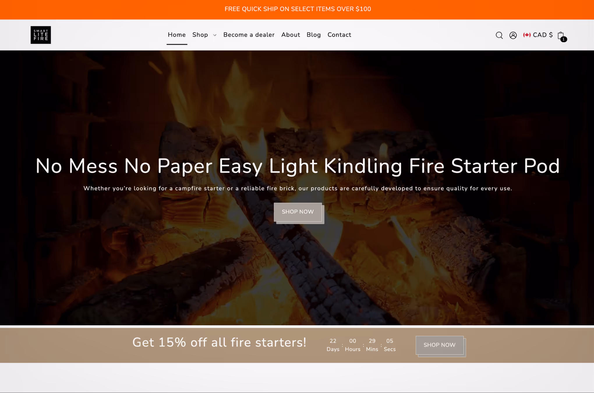 Smart Lite Fire is a Canadian-owned e-commerce brand specializing in fire starters and bio-bricks. As partners of Costco and Home Hardware, they needed a reliable and modern Shopify store that aligned with their brand identity. Prime Stratix rebuilt their website from the ground up and implemented ongoing SEO to strengthen organic visibility across North America.